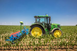 John Deere’s new tractor integrated AutoTrac Implement Guidance system steers both the tractor and row-crop cultivator by combining a camera with GPS steering for high speed, high output weed control.